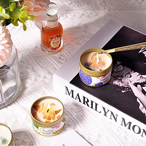 - Luxurious Crystal Candle Set: Amplify your energy, magnetise abundance and wealth, heighten your spiritual enlightenment, and experience self care like you’ve never experienced before with our AOOVOO chakra candles. Soy Candles include: Aventurine, Blue-vein stone, Citrine, Red Agate, Amethyst Crystal.